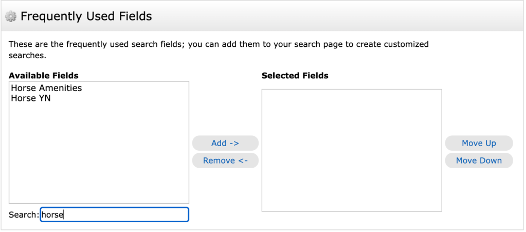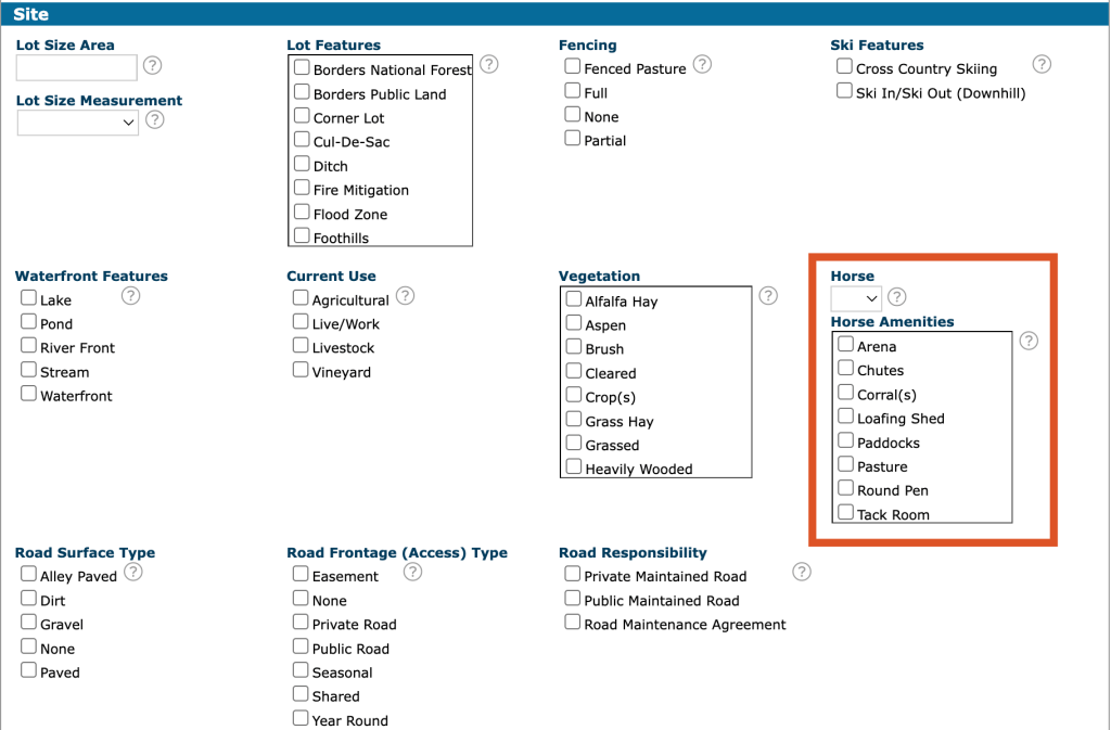 Looking for horse properties? Matrix makes it easy; but keep in mind, this field is optional and only searchable if added during listing input.